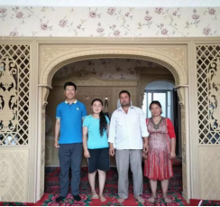 家访第一站——新疆。因学术研究需要,前年暑假孙明哲老师与妻子一起踏足新疆,穿过荒漠戈壁,去了解新疆农村的情况。在途中他希望去新疆同学家里看一看,便在工作之余绕道去了喀什市泽普县的一位维吾尔族同学巴哈尔古·艾尔肯家中,受到了他们全家的热烈欢迎。据孙老师回忆,他很高兴看到巴哈尔古同学的家庭情况很好,家庭和睦,没有太多生活压力,这让他放心不少。尽管孙老师与巴哈尔古的父母语言不通,但巴哈尔古同学一家依然以最高的热情与孙老师积极交流。了解了巴哈尔古同学的情况后,孙老师说他十分欣慰地看到自己的学生家庭和睦,生活幸福。