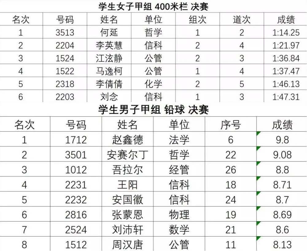 1.我院大二运动健将何延在女子甲组400m栏决赛中喜提冠军。